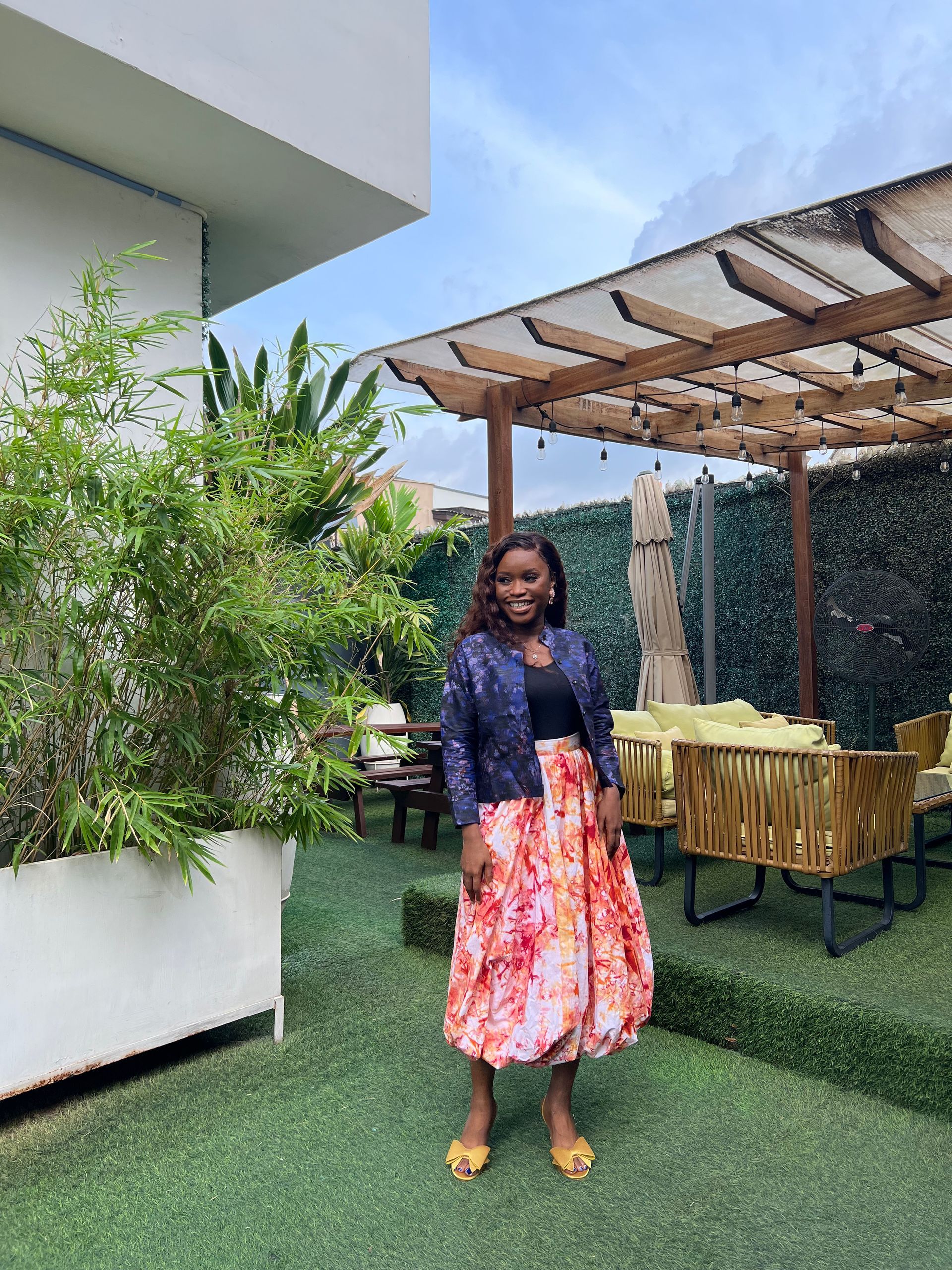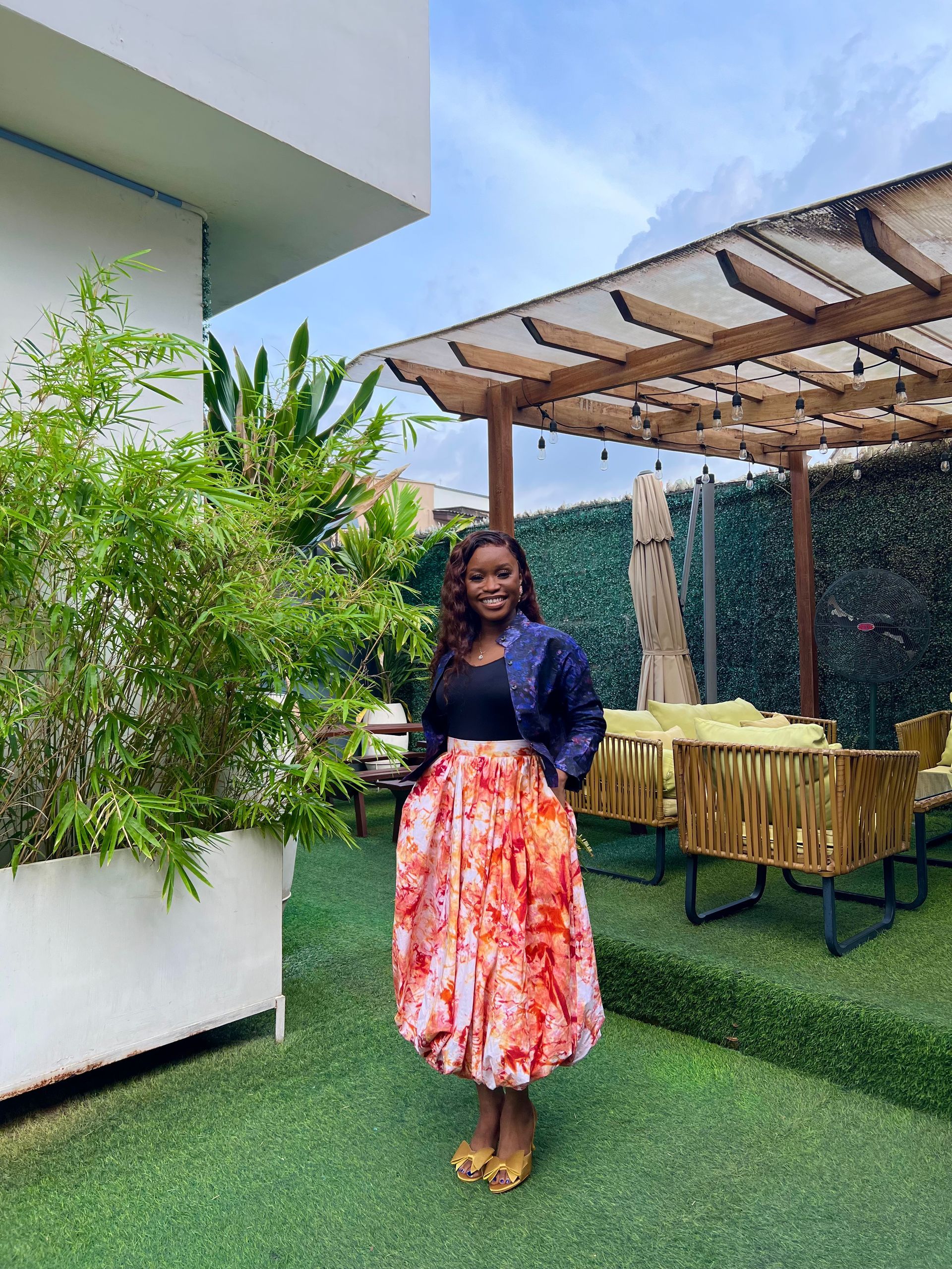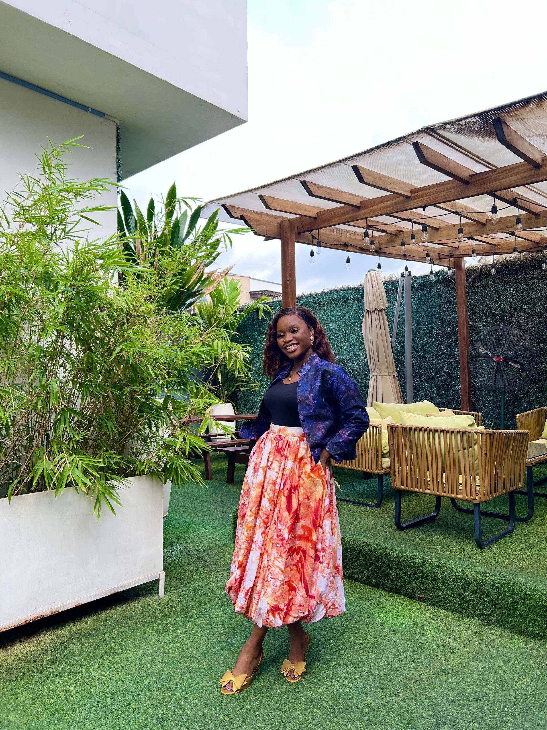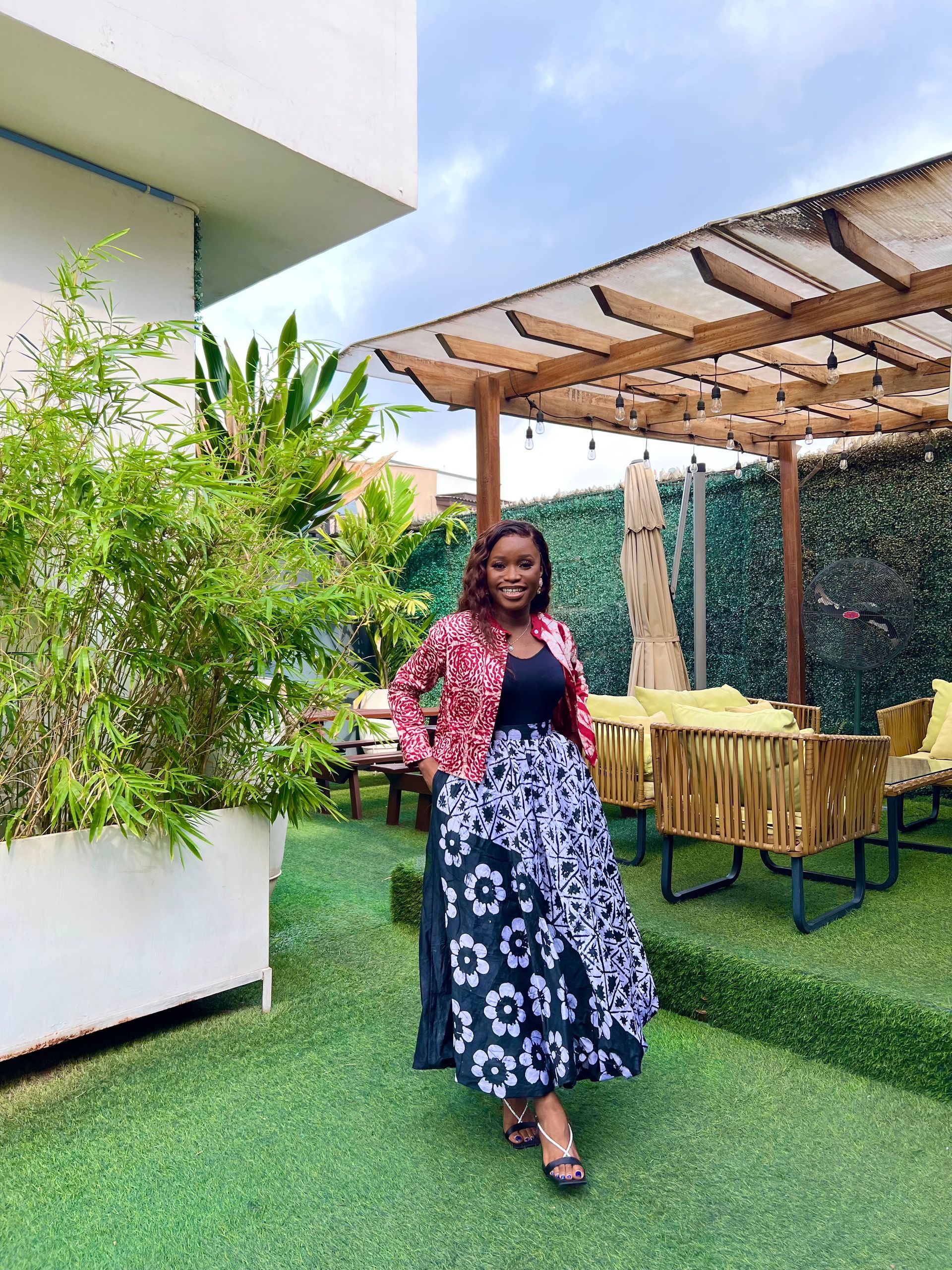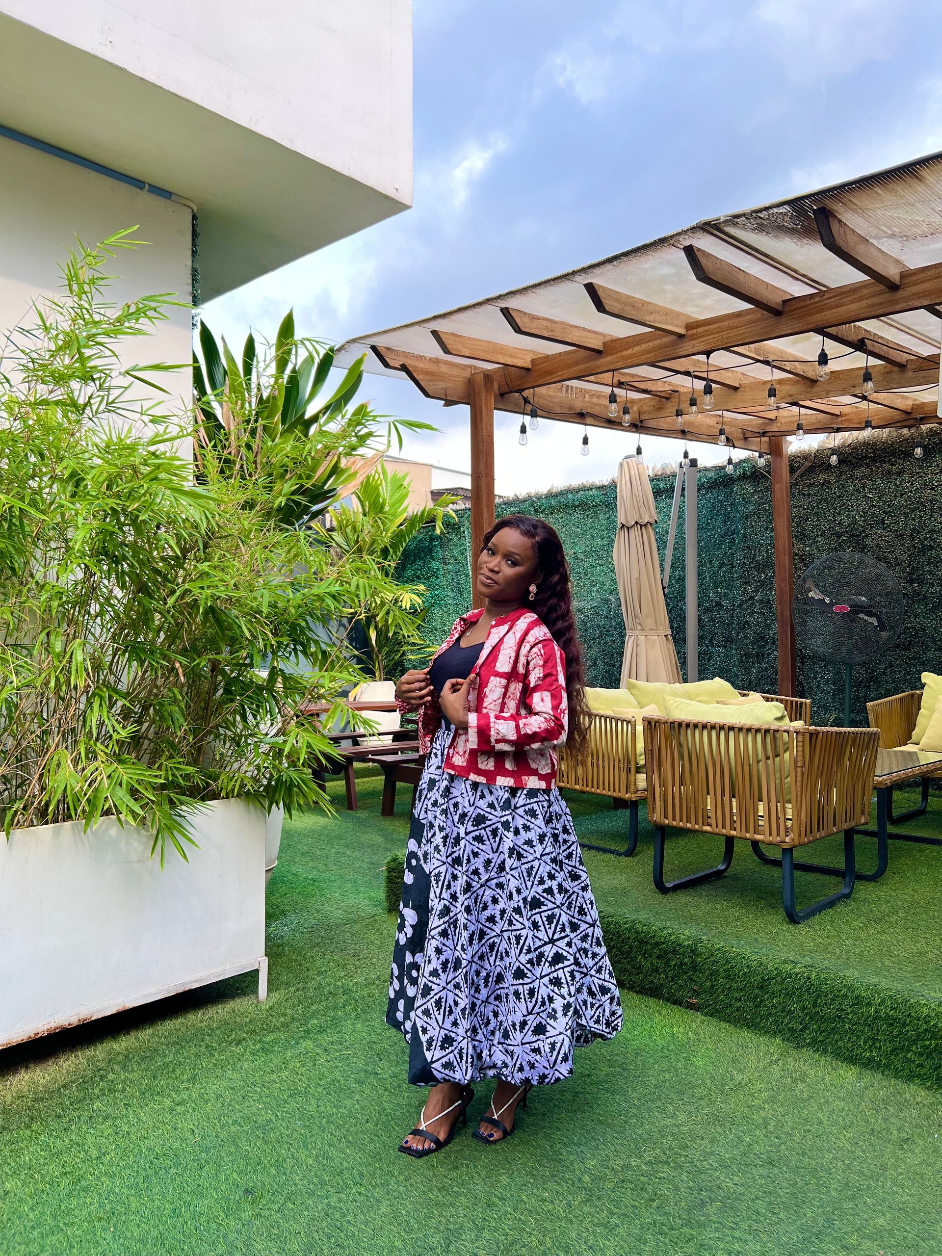 The Ayomide Set, crafted from premium adire cotton, redefines elegance with its perfectly tailored ball skirt and shirt. 🌸💜