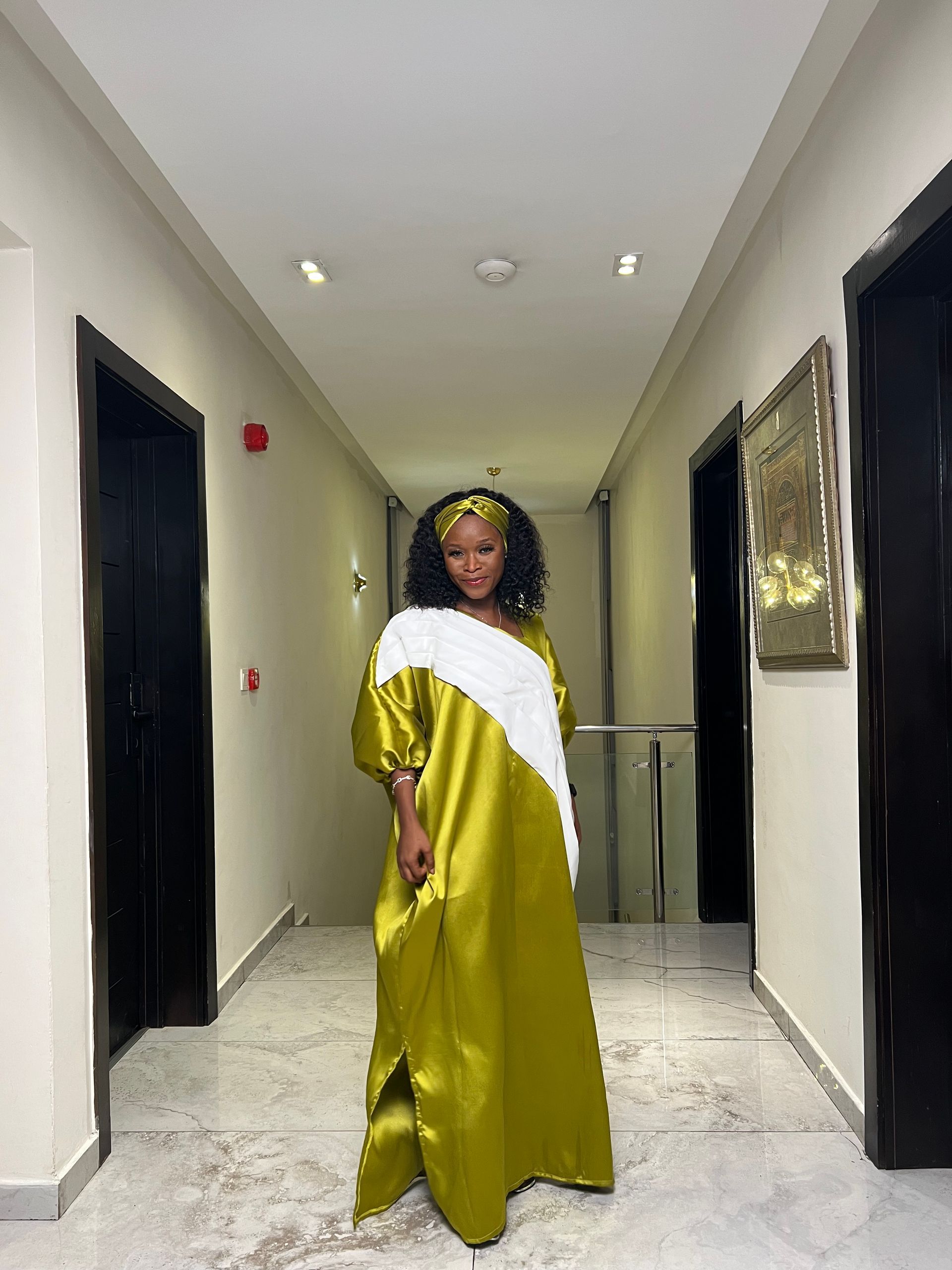 The Isinmi dress 2, a regal bou bou style made with mikado silk enriched with luxurious crepe embellishments, is designed for those who embrace elegance in every step. ✨👑