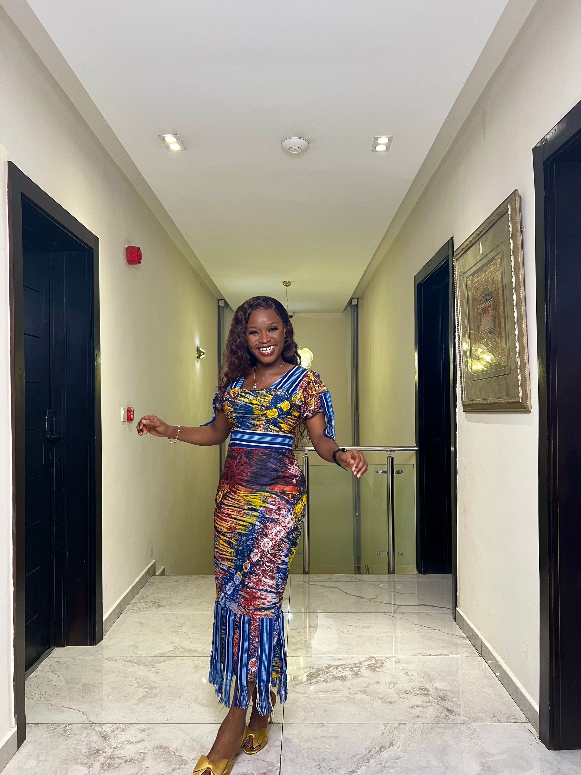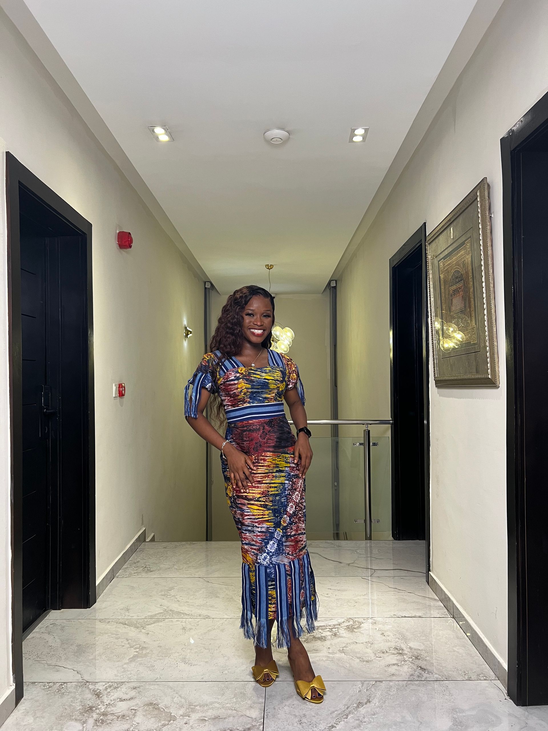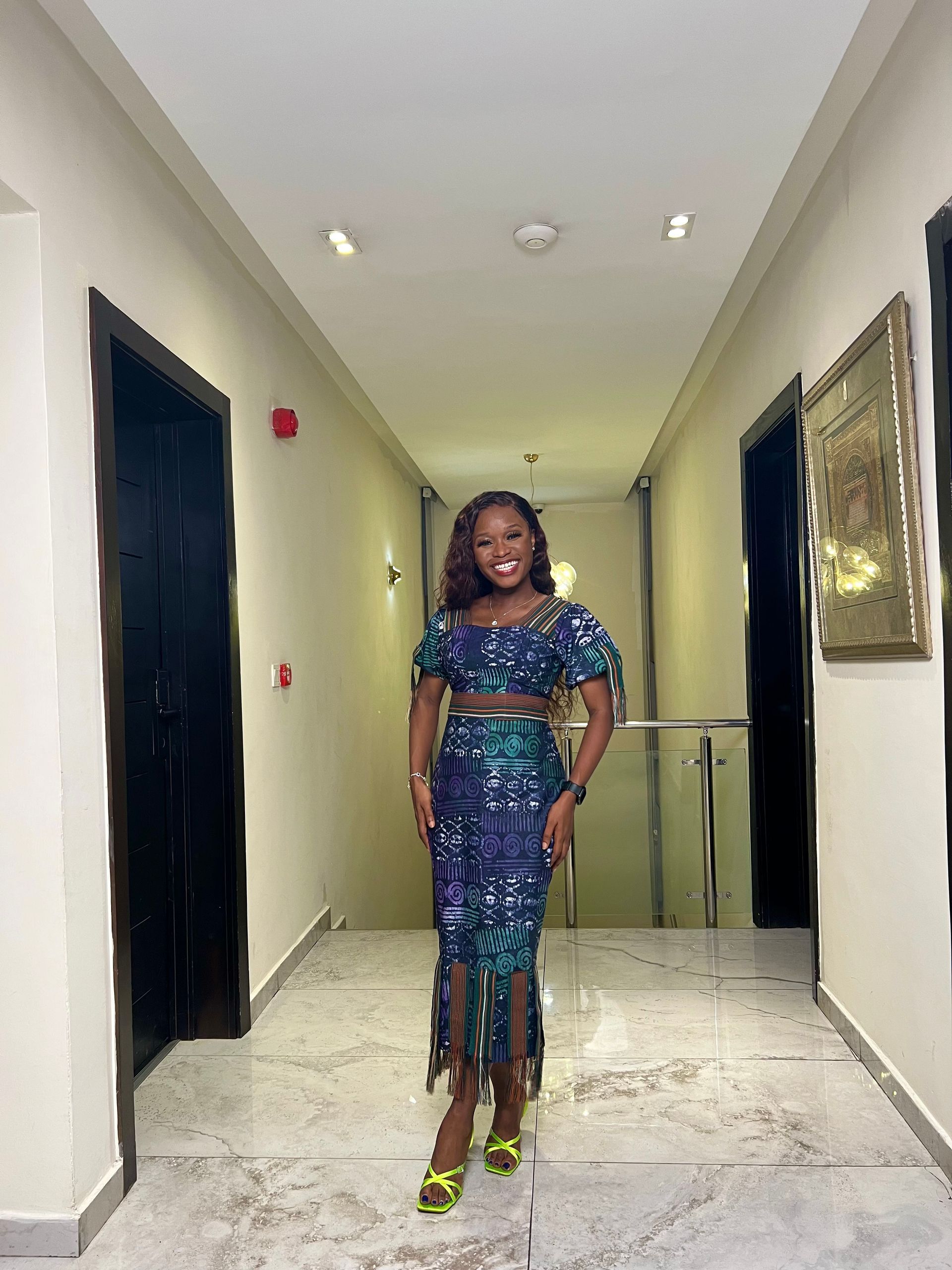 Made from vibrant Adire fabric and enhanced with Aso Oke at the sleeves, hem, and waistline, it's a celebration of culture and craftsmanship. ✨💫