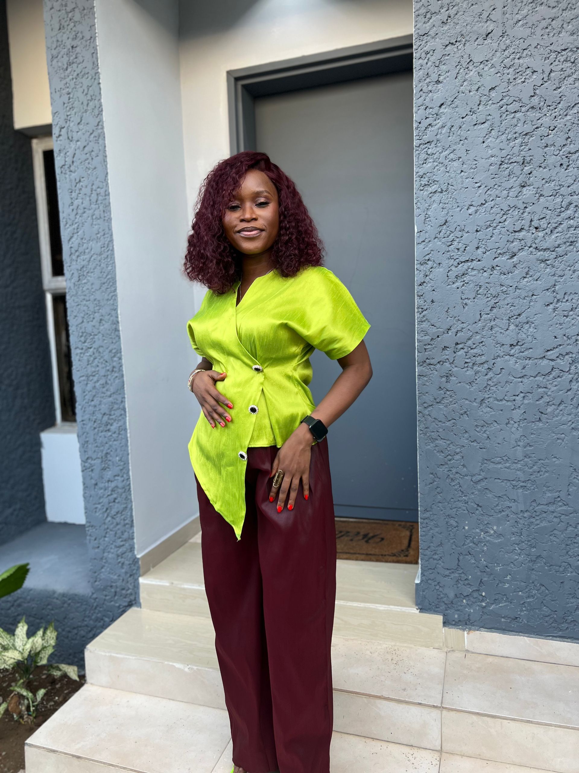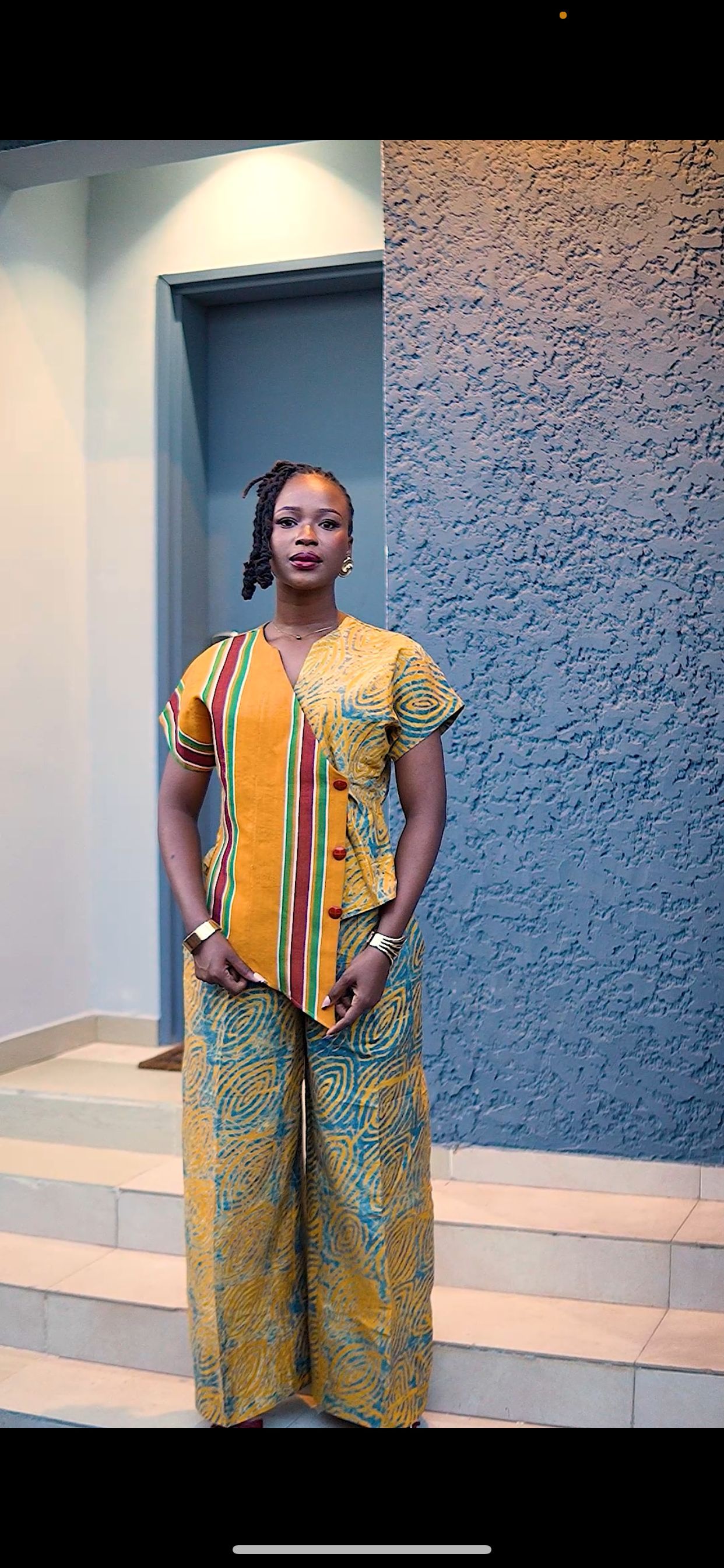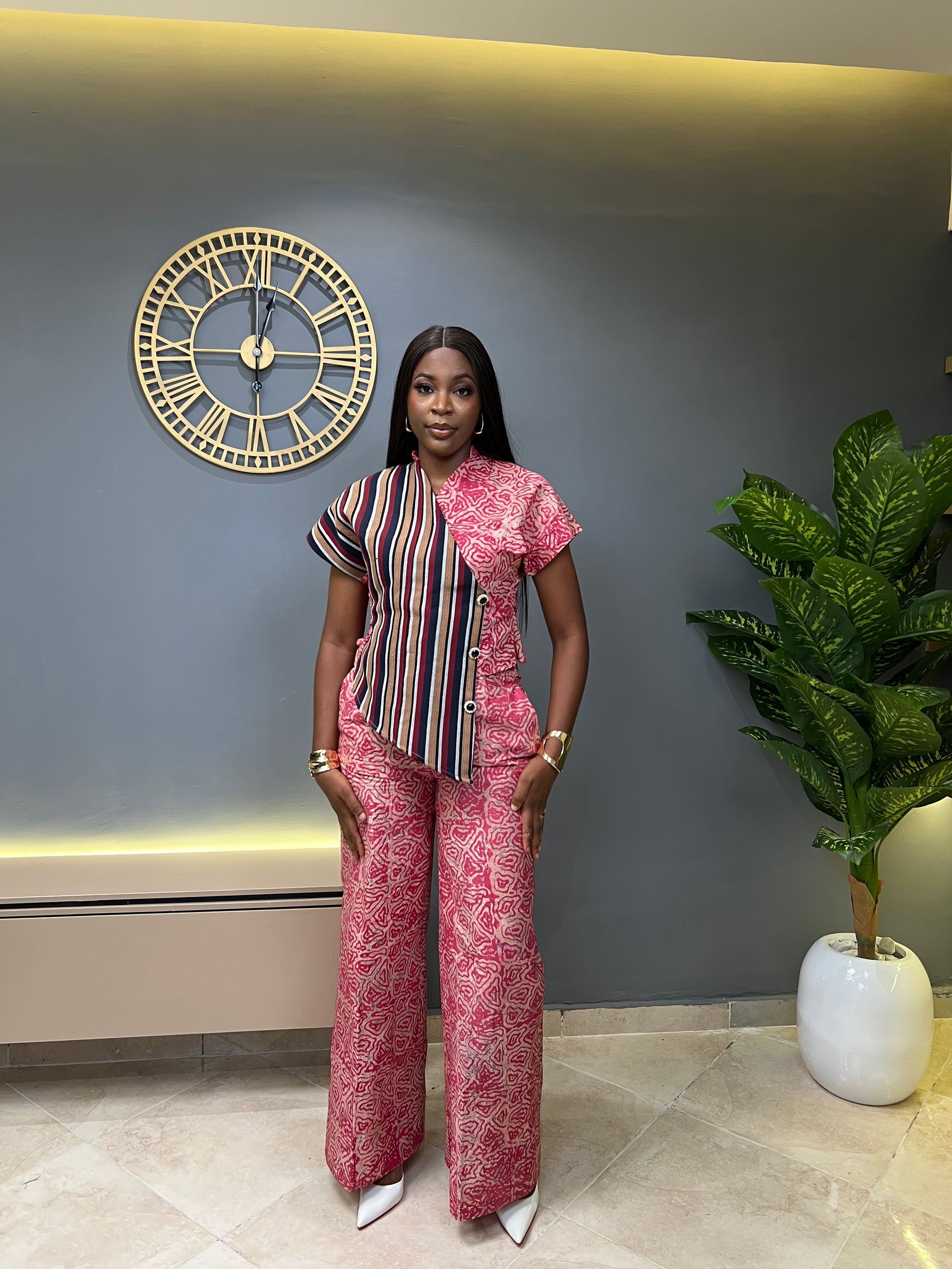 Atofarati SET - an uneven wrap blouse paired with a pant