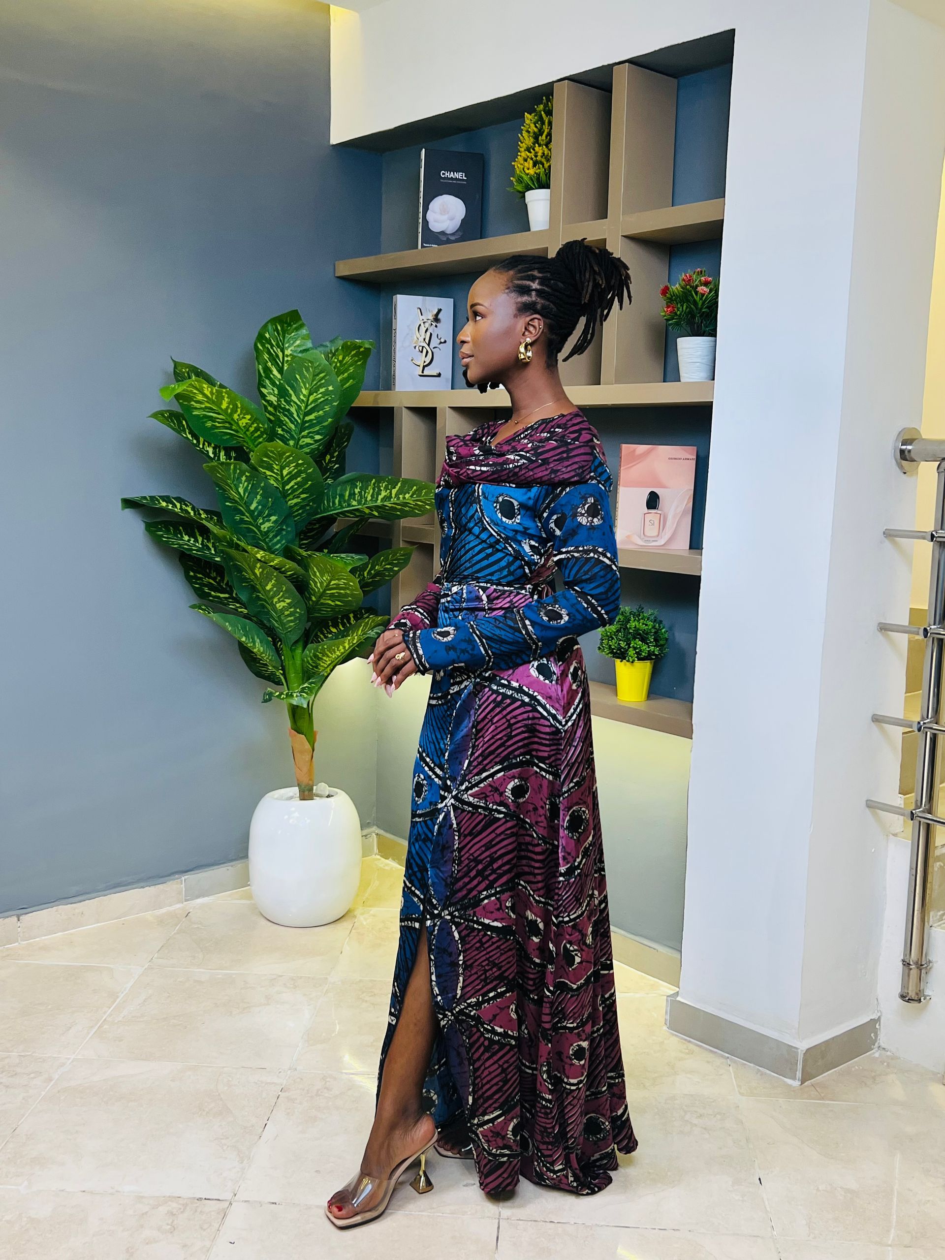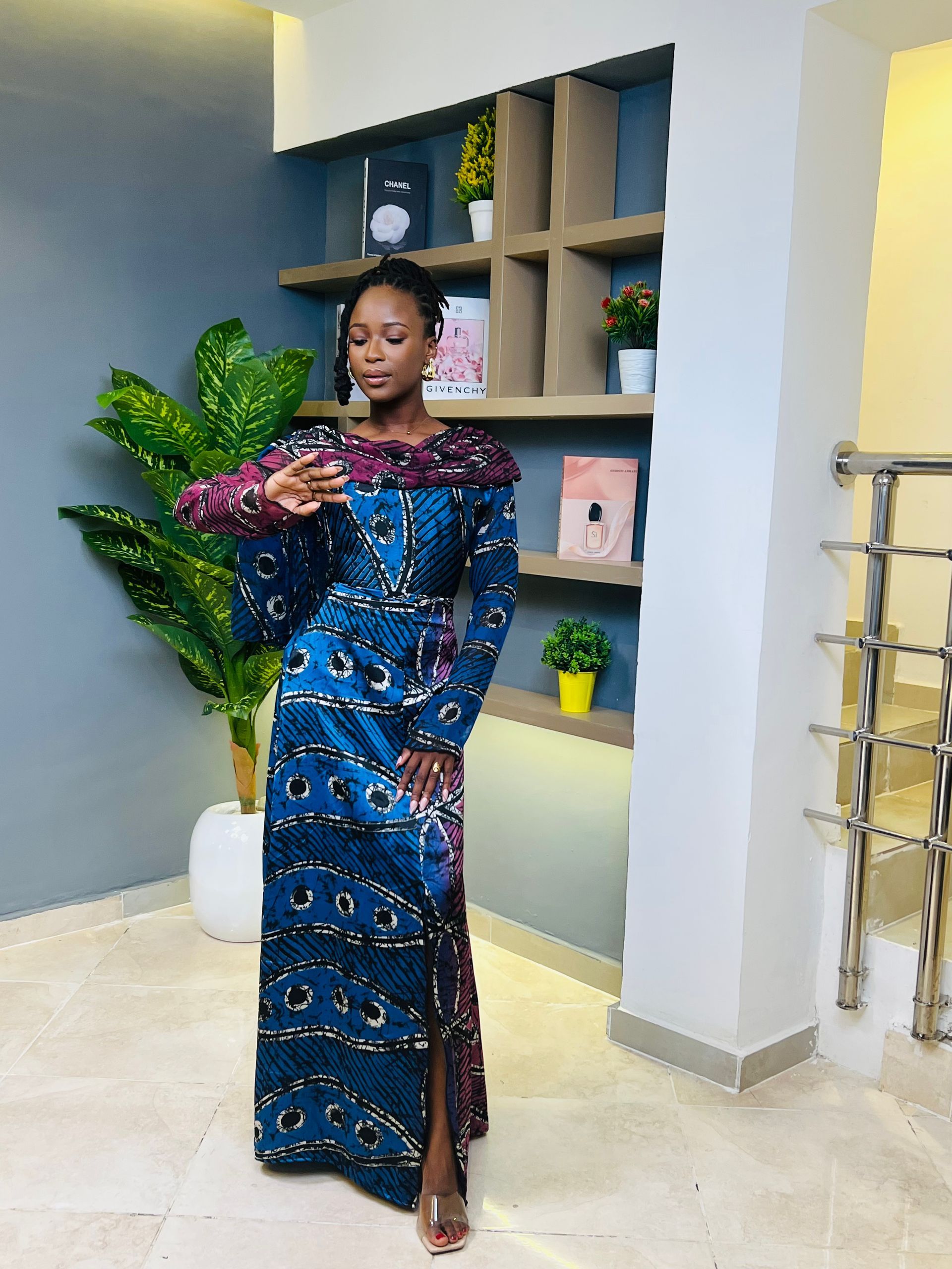 - A trumpet dress made in adire silk & chiffon