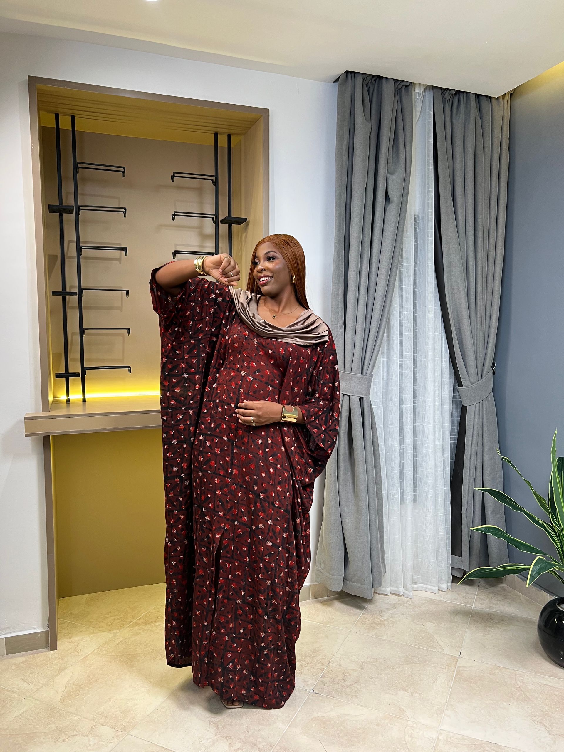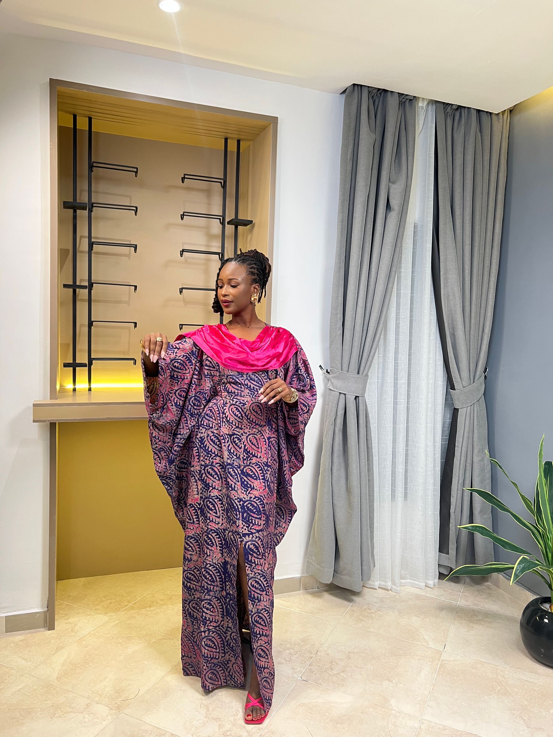 - A boubou dress made in flowers crepe